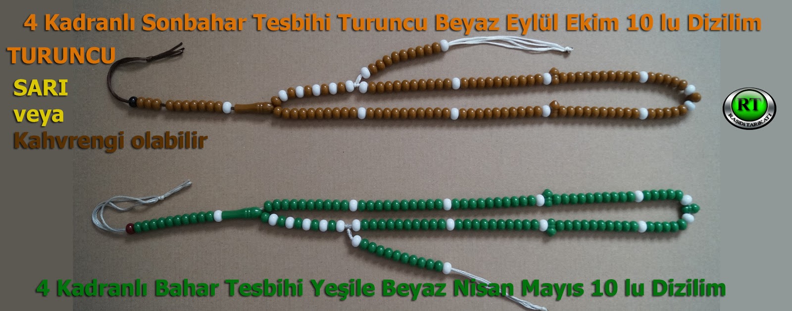 Tesbihlerimiz mevsimin ve havanın durumunun rengine uygun, renkli çift kadranlı Abaküs mevsim tesbihi. (siyah, kar beyaz, yeşil, kırmızı veya bordo kırmızı, kahve veya sarı veya turuncu, saydam su rengi, ve çamur rengi, mor renk,pembe,turkuaz mavi, bulut mavisi,gri renkte,agaç tesbih,fosforlu tesbih...)