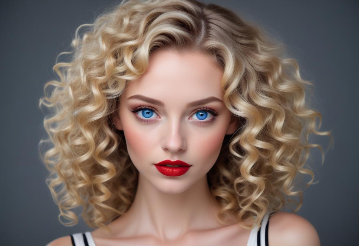 Kıvırcık Sarı Saçlı Güzel Bayan Portresi V250620241954P1