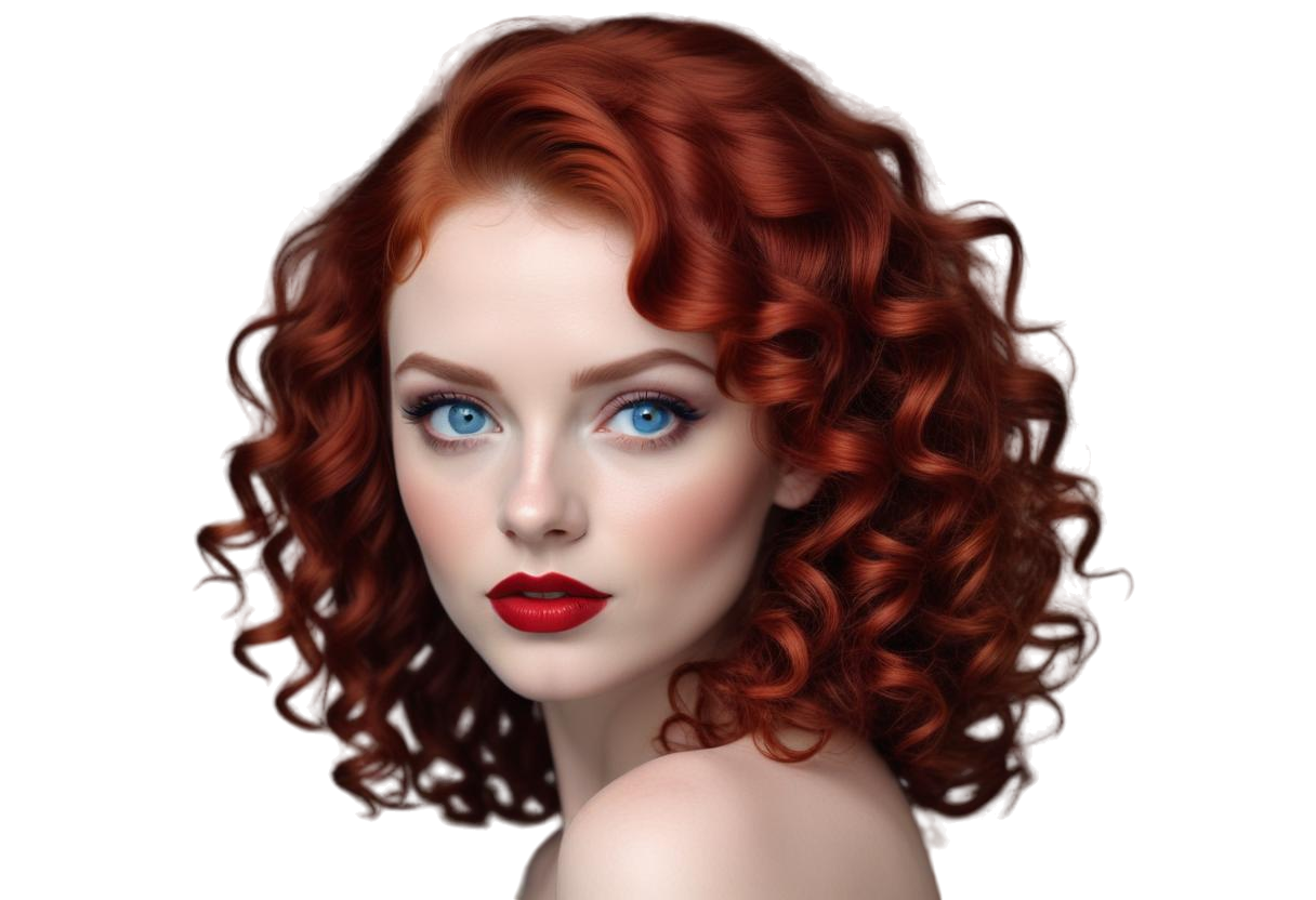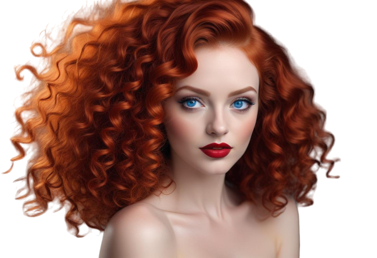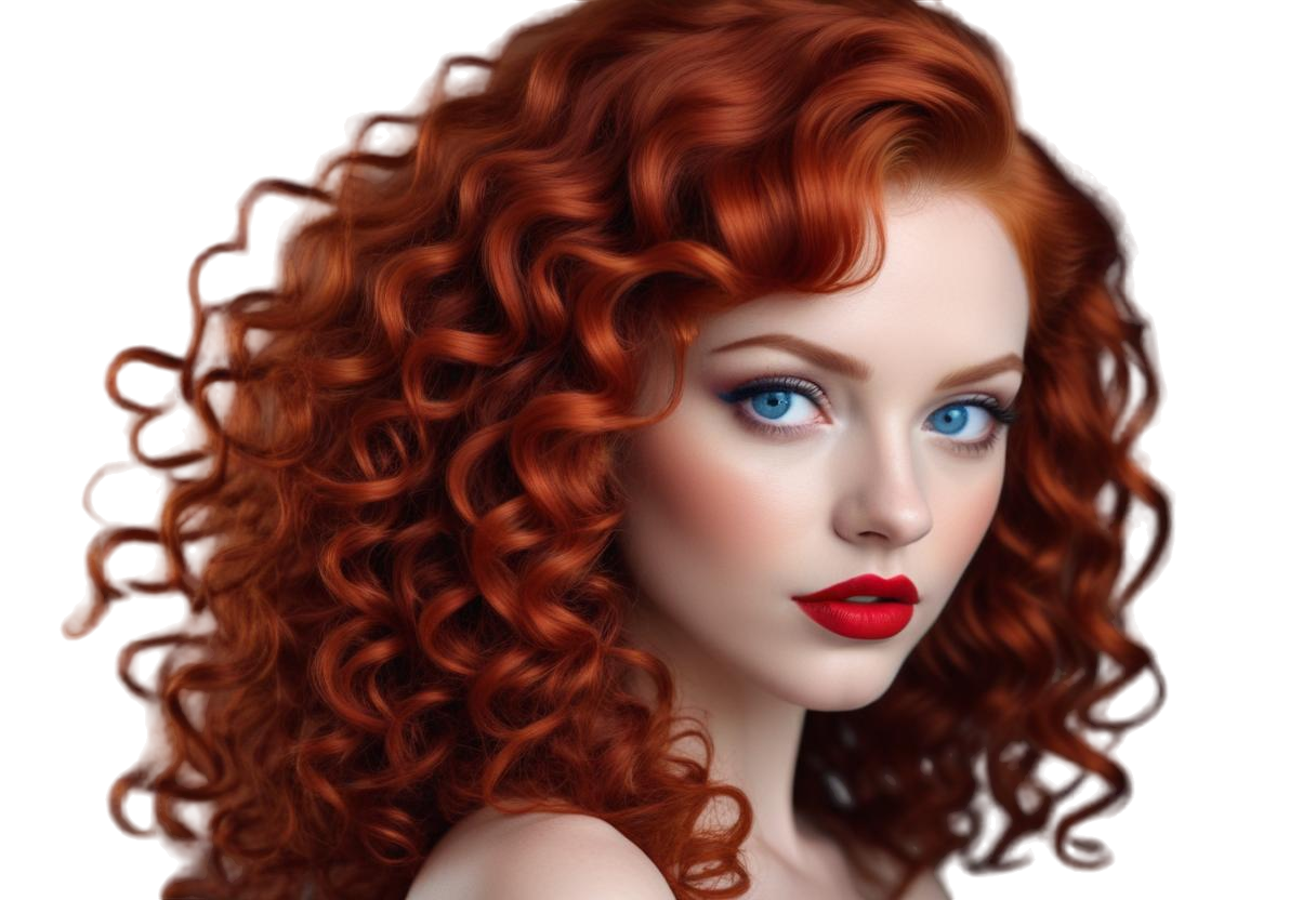 PNG Kıvırcık Kızıl Saçlı Güzel Bayan Portresi V250620241954P1