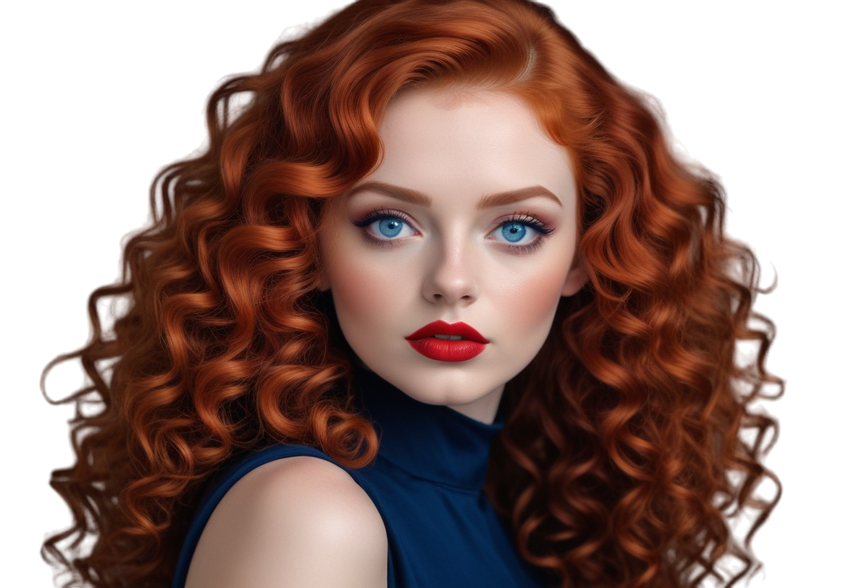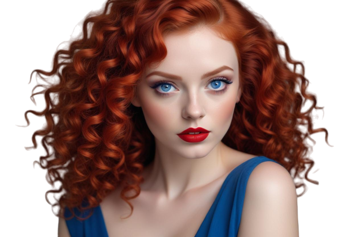 PNG Kıvırcık Kızıl Saçlı Güzel Bayan Portresi V250620241954P1