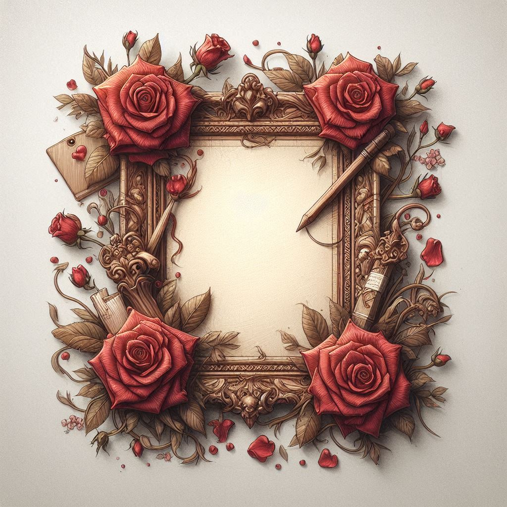 Ahşap Çerçeve Wooden Frame ve Güller V101120241441P1