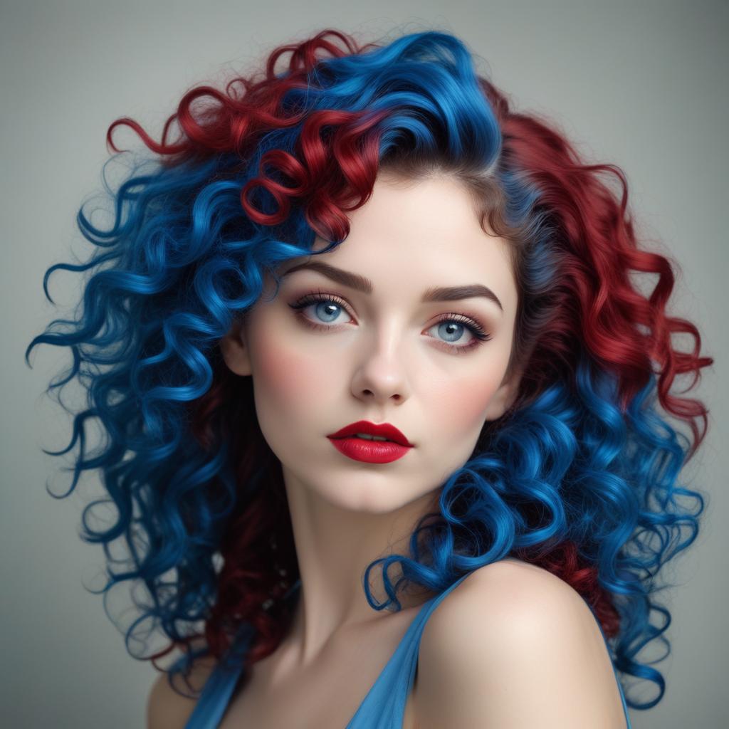 Kıvırcık Mavi Saçlı Bayan Portresi V30062024125922P2